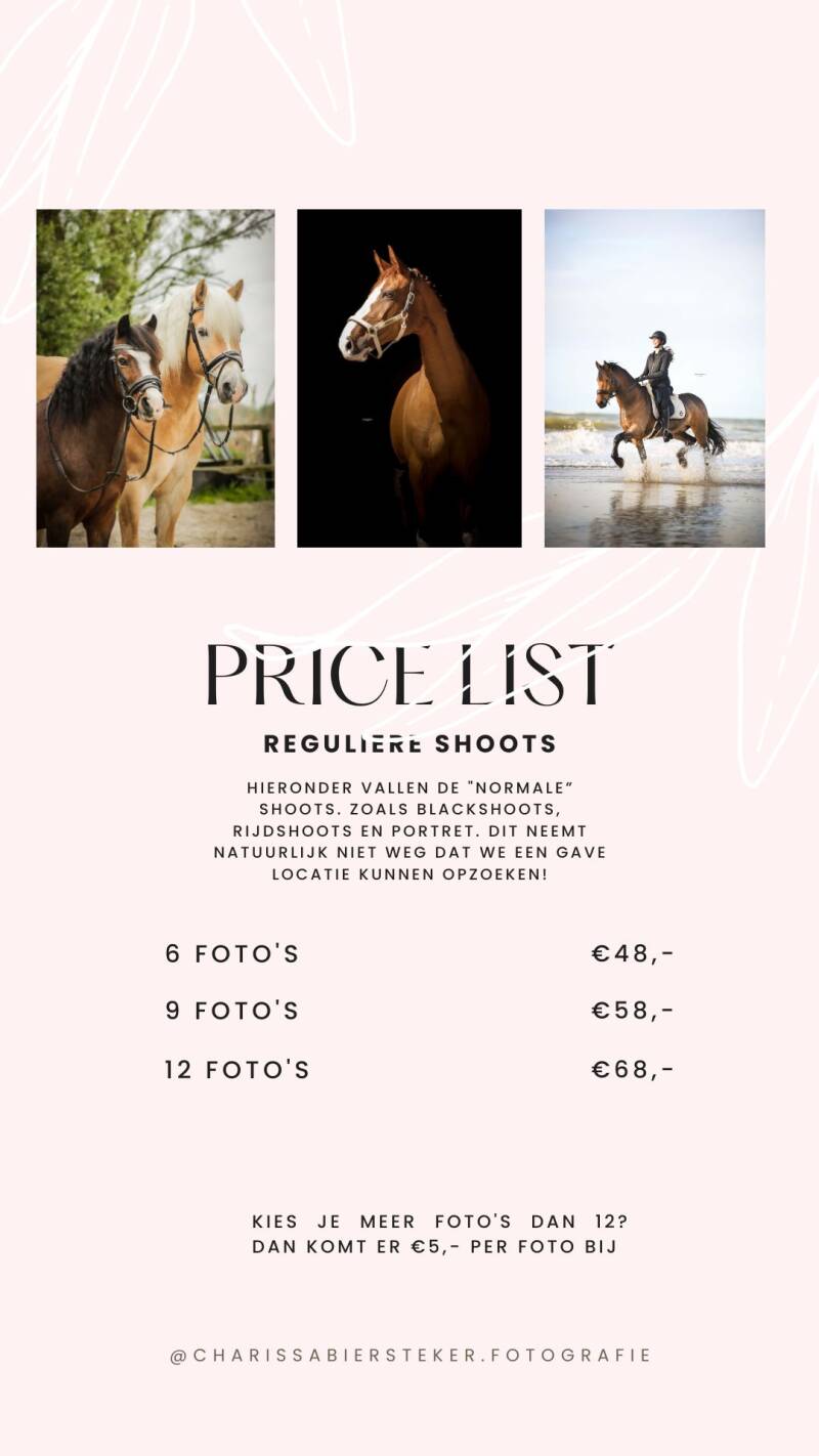 Boek je een shoot zonder thema? Dan zijn bovenstaande de tarieven hiervoor.